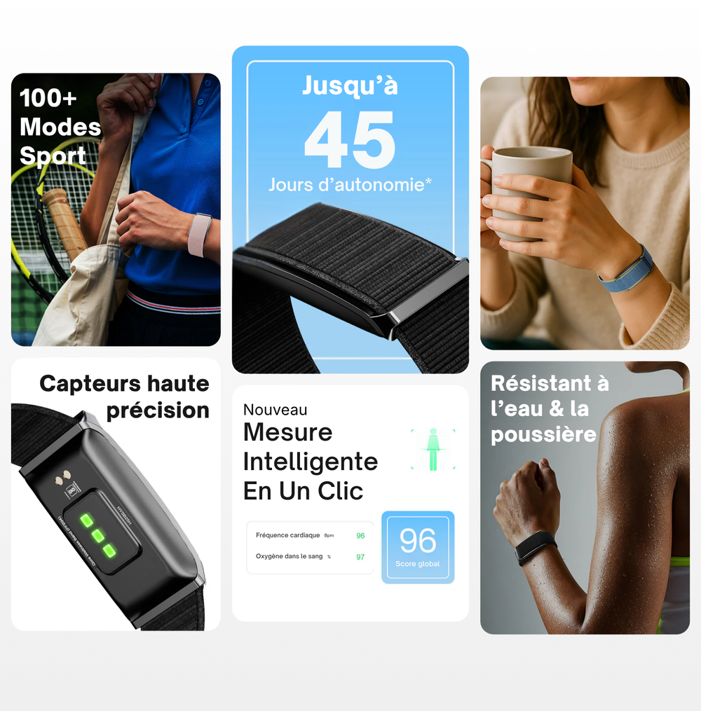 Un capteur portable pensé pour vous offrir une vision complète de vos données de bien-être et de condition physique, avec des conseils personnalisés, et sans abonnement.