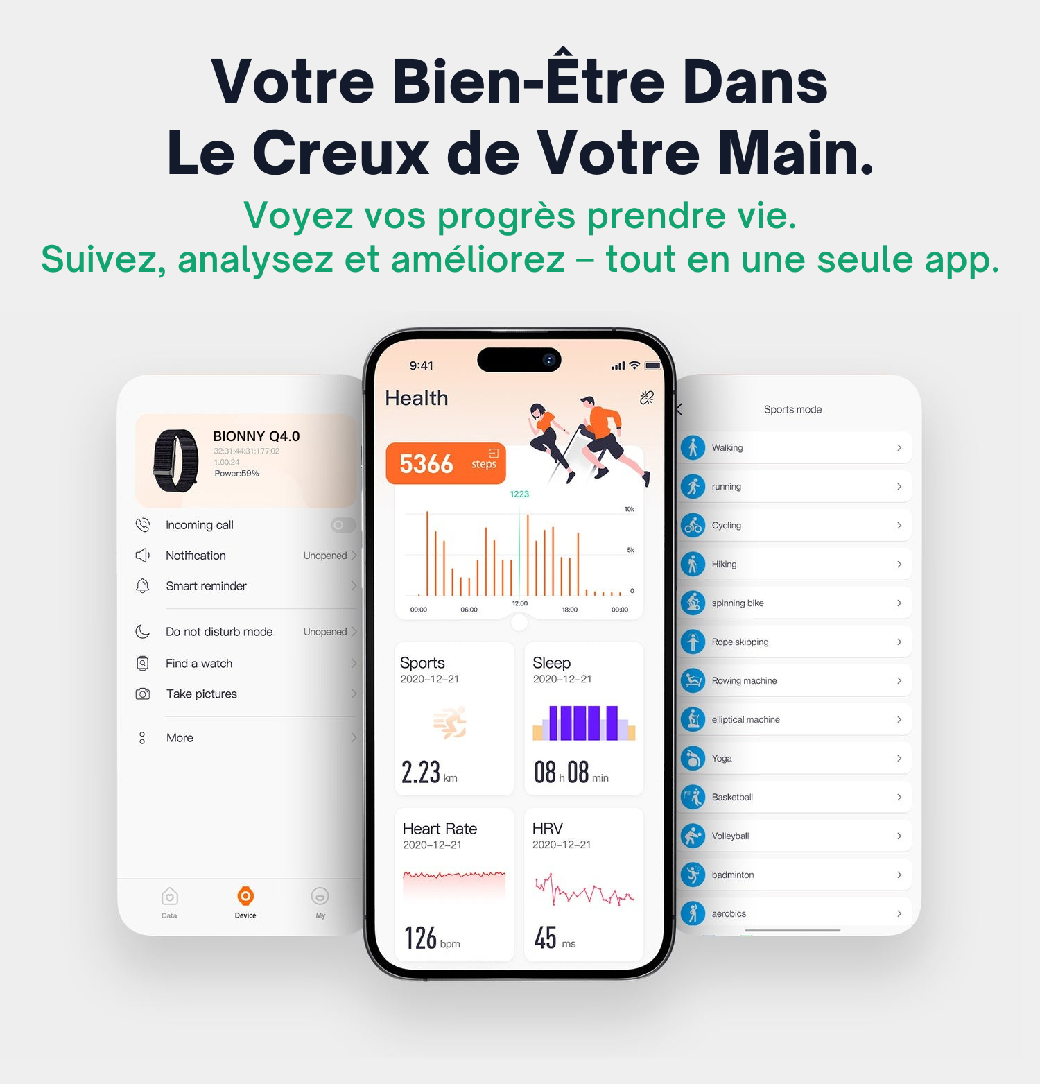 Pas besoin d’être un expert. Il suffit de la porter, l’application vous guide pas à pas.